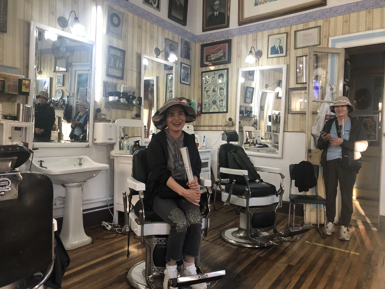 코너에 있는 나무상자를 꺼내 보이더니 이것이 무엇인지 알아맞히면 선물로 주겠다고 한다. 골동품인양 세월의 나이가 많아 보이는 박스다. 나는 여자 화장대라 했고 다른 우리 일행은 보석상자라고 했더니 주인장은 살며시 웃으며 상자를 연다. 120년 된 축음기다. 지금도 작동이 된단다. 옆방으로 옮겨가니 거기에는 100년이 넘은 전기스토브 와 전기세탁기가 있었다. 그다음에는 주방이 있는데 옛날에 살림하고 살았던 주방기기 일체가 그대로 보존되고 있어 마치 100년 전 어느 가정집을 방문하고 있는 듯하다. 뜻하지 않게 좋은 기회를 맞이한 이런 경우를 횡재했다고 해야겠지? 지은 지 150년이 된 저택에는 화장실이 이층에 3개 아래층에 2개가 있는데 이층에 있는 3개의 화장실은 여자용, 남자용, 어린이용으로 구분, 사용되었다 한다. 다시금 일층으로 내려오니 식당옆에 웬 이발소가 있다. 지금도 정상적으로 영업을 하고 있는데 100년 이상 이 자리에서 영업을 해오고 있다 한다. 손님용 의자, 이발기기들이 옛것 그대로다.