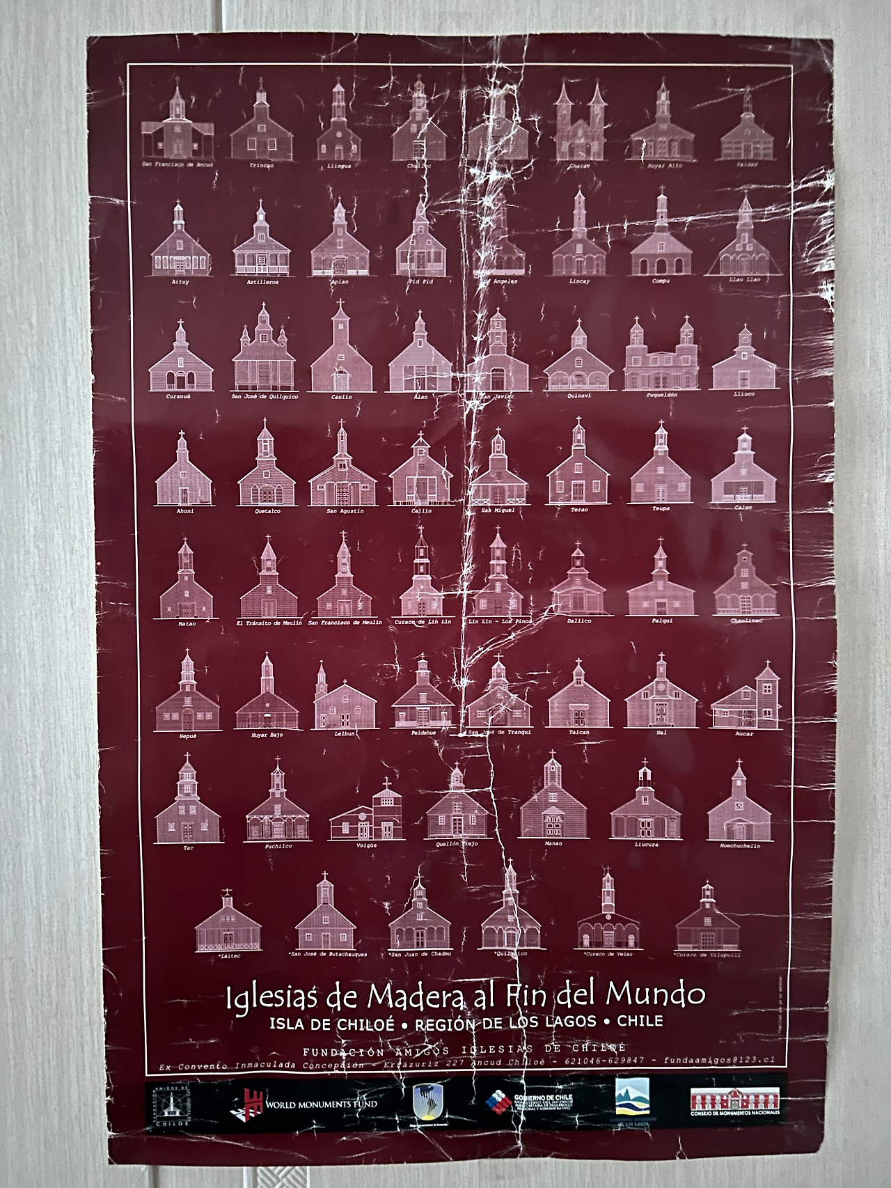우리는 섬 입구 Ancud에 있는 성당을 찾아가고 있는 중이다. 점심을 먹기 위해 어느 식당에 들렀다가 주인장에게 성당을 물었더니 기다리라면서 밖으로 나갔다가 돌아오더니만 자기 집에 보관하고 있는 사진(70개의 성당)을 주면서 갖고 가란다. 와우! 놀랍고 고마워요.