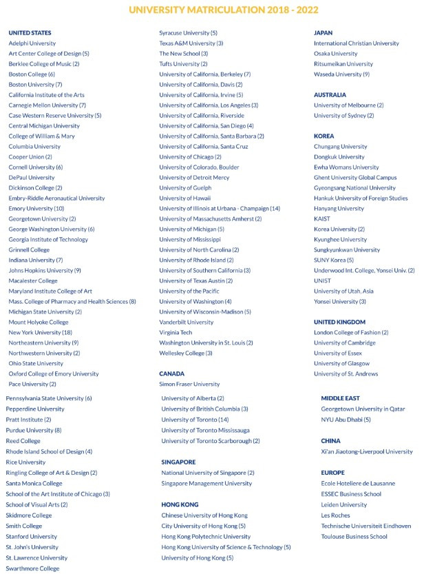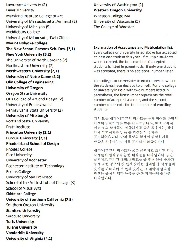 아쉬운 점은, 서울국제학교가 특히 스탠퍼드대학에 많이 치우쳐 있는 것으로 보입니다.