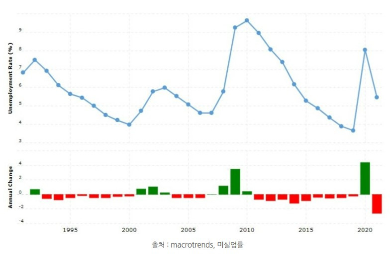 이때의 미국 실업률은 어떻게 움직였을까요?