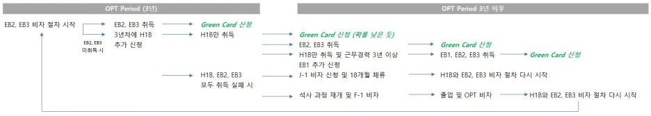결론은 OPT 비자 기간 3년 중에 EB2나 EB3 비자를 최대한 빨리 받는 것입니다.