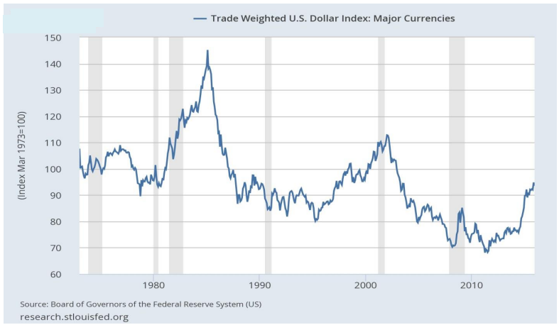 아래 표에서 미국달러지수를 보면 1985년까지 145 수준으로 치솟다가 프라자 협정 체결 이후부터는 100 아래로 떨어지면서 달러는 약세 전환이 확연합니다.