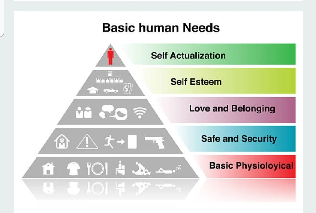 미국의 심리학자 매슬로우는 인간의 욕구를 위계에 따라서 5단계로 나누어 보았다. 그의 동기화 이론에 따르면 인간의 욕구는 욕구의 강도와 중요성에 따라 5단계로 나뉜다.가장 기초적이고 낮은 단계인 1단계는 생리적 욕구로 숨쉬고 먹고 자고 배설하는 등 생활의 가장 기본적인 욕구를 말한다. 그다음 2단계는 안전의 욕구로 위험 고통으로부터의 회피와 안정의 욕구이다. 3단계는 애정의 욕구로 애정, 친화, 소속감으로 구성되어 있다. 다음 4단계는 존중의 욕구로 타인들에게 주목과 인정을 받으려 하는 욕구나 자기 존중, 자율성, 성취감과 관련 있는 욕구다. 마지막 5단계는 자아실현의 욕구로 자기 발전을 이루고 자신의 잠재력을 최대한 끌어낼 수 있는 단계를 말한다.