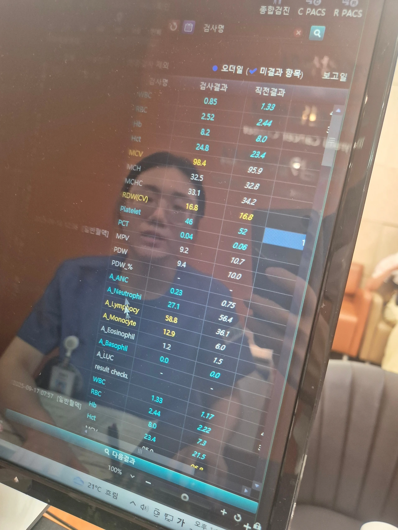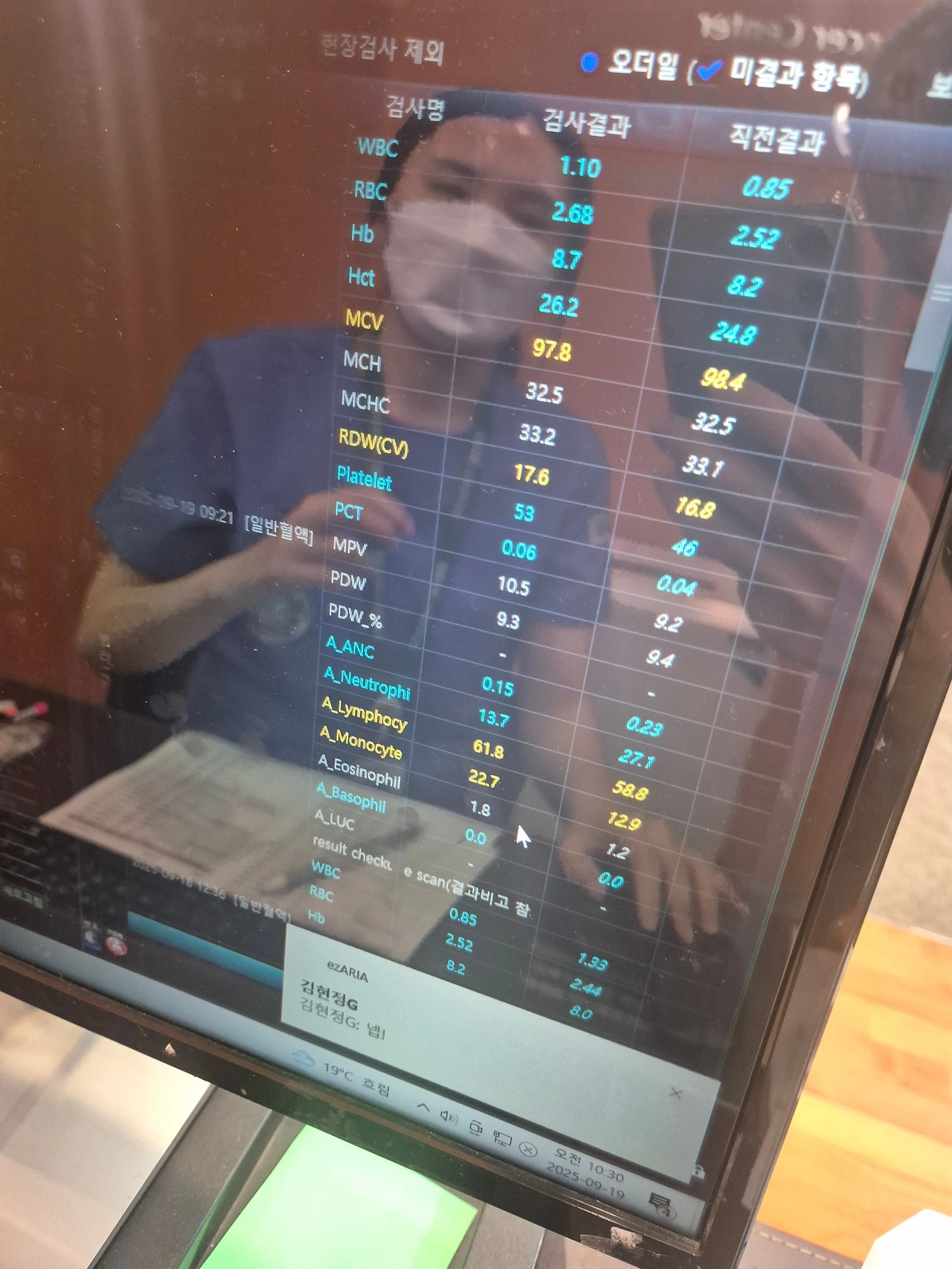퇴원을 했다. 2만대였는데 5만대가 됬다고..정상수치는 15만대라고 한다