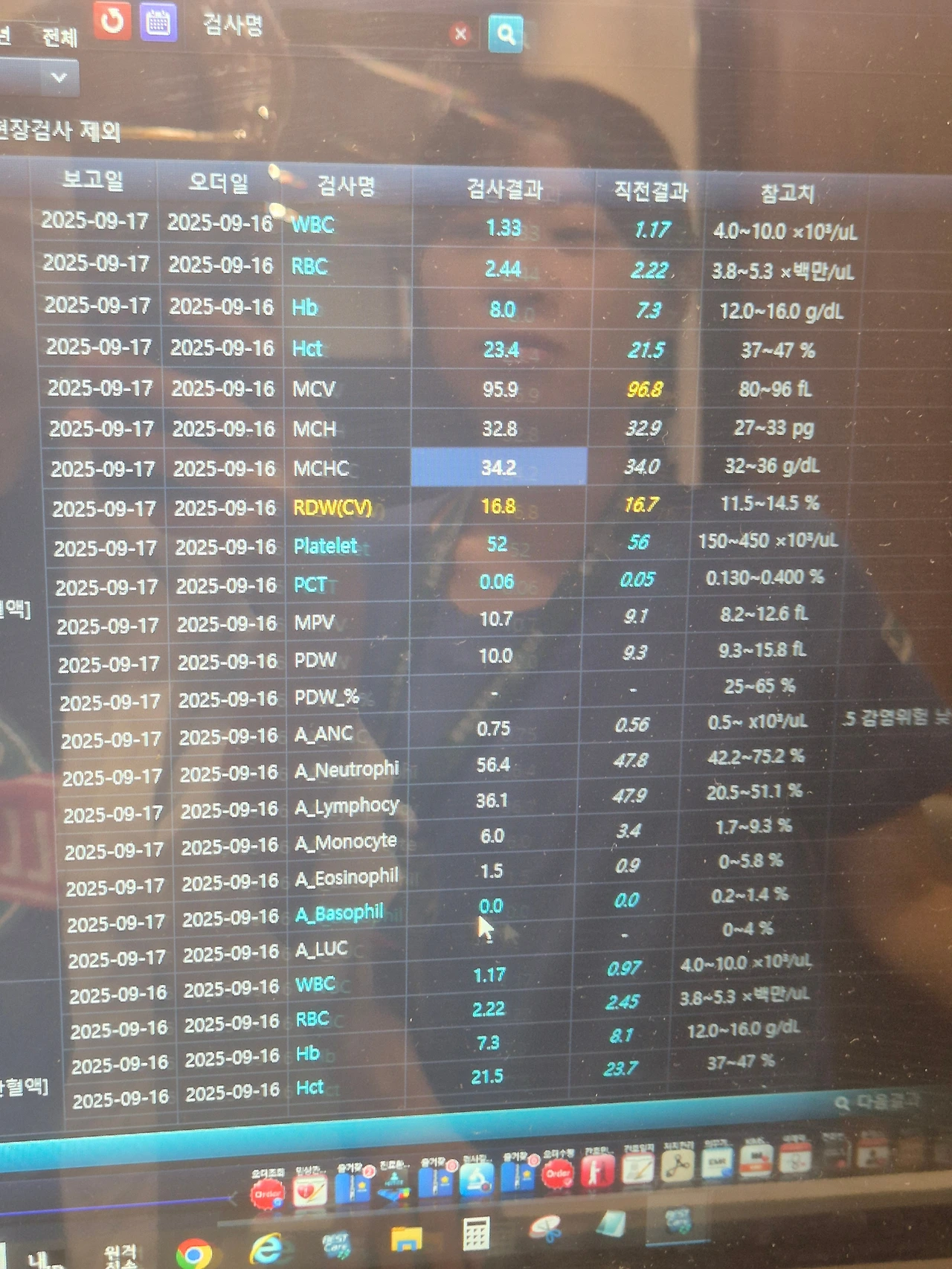 수혈도 받아야한댄다. 아 어쩐지 어지럽더라.