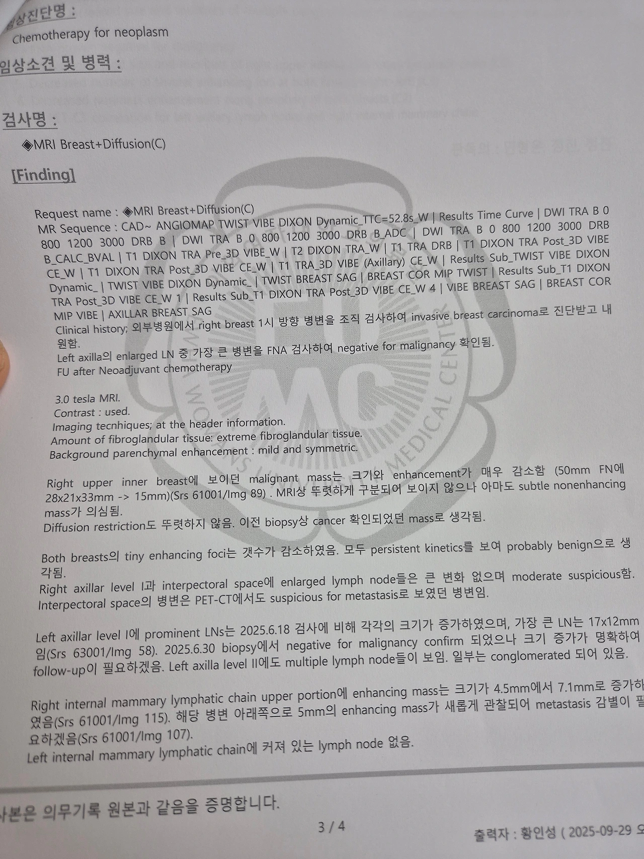 원발암은 얼마 남았는지 궁금해서 나중에 판독지를 떼봤다.