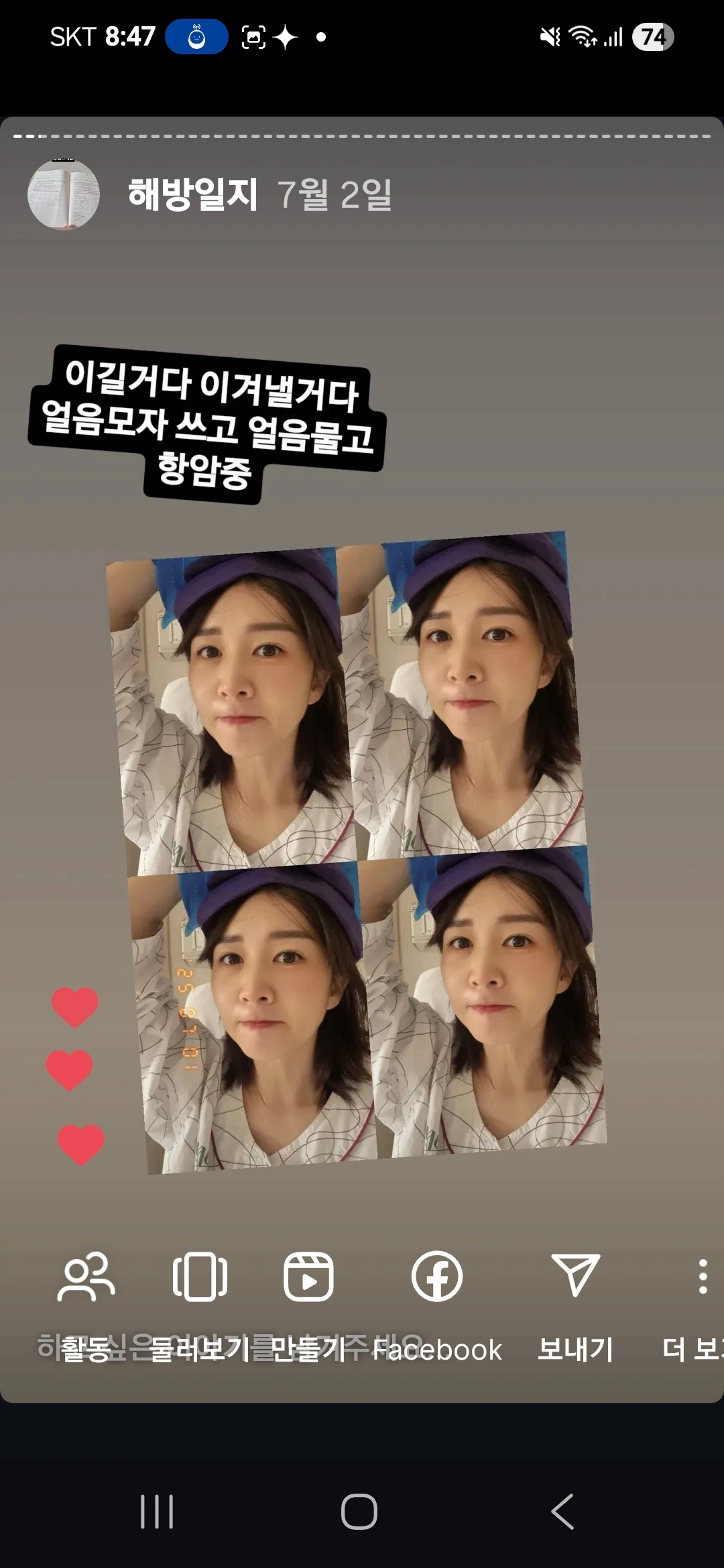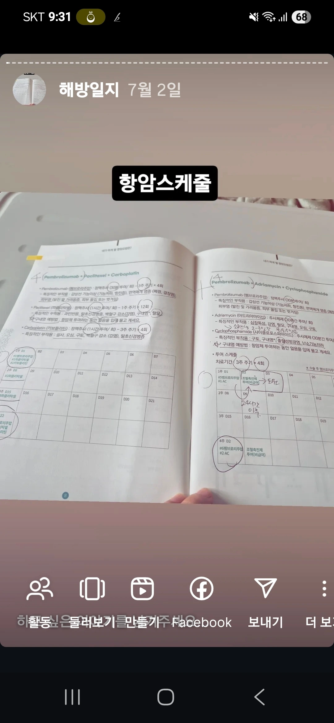 집에 와서는 온갖 부작용과 항암 사례에 대해 검색을 했다. 항암 당일과 다음날까지는 스테로이드제 등 부작용 방지약 효과때문에 괜찮고 견딜만했다는 사람들이 많아서 안심이 되었다. 먼가 쌩쌩한 기분에 잠이 안들고 말똥말똥했는데, 스테로이드제때문인거 같다. 예전에 코로나 백신주사 맞은날 처럼 심장이 조이는 느낌도 들었다. 이러다 숨이 멎으면 어쩌지? 두렵지만 그 외 이상한 점은 없었으니까.