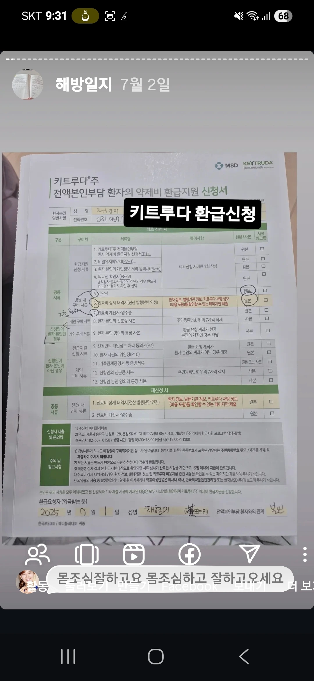 6월29일. 항암을 위해 입원을 하였다.