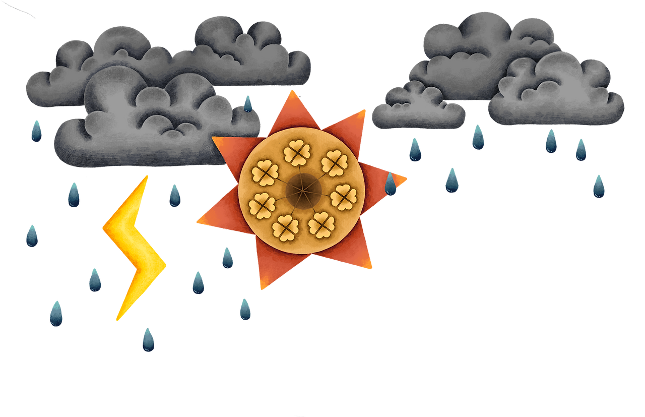 먹구름과 비는 결심을 했지만 여전히 남아 있는 아이의 불안과 우울을 상징하며,
