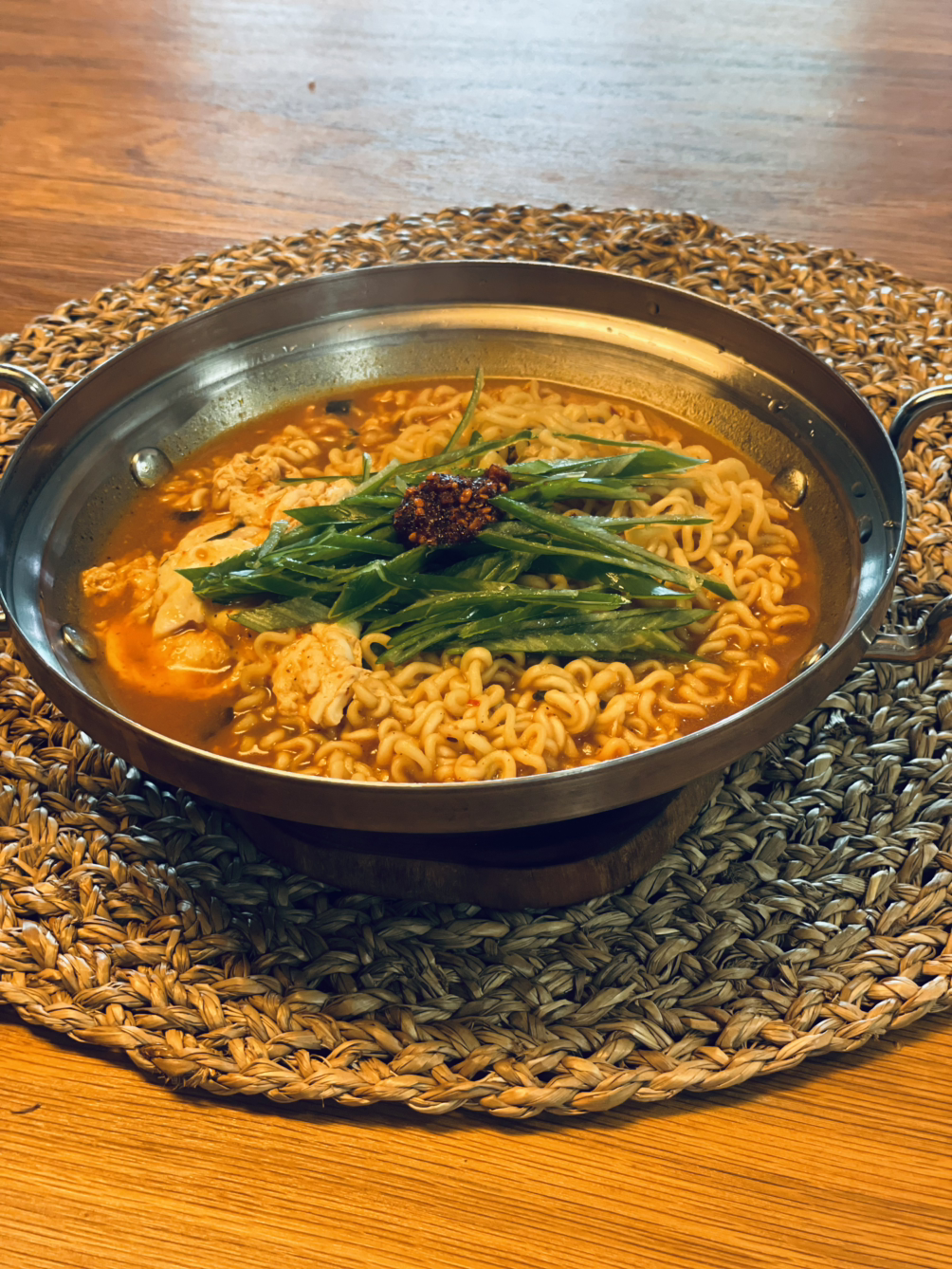 1. 일반 라면 레서피에 물을 조금 더 추가해주세요. (가장 플레인한 라면으로 선택해주세요. 저는 보통 스O면이나 안성O면으로 끓인답니다.)