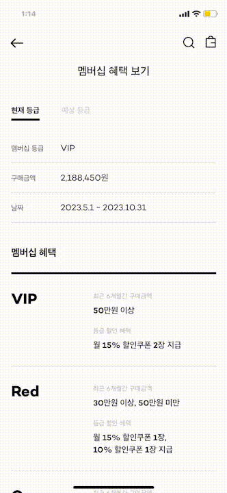 + 사실 29CM는 Vip 장벽이 그리 높지 않다. Vip가 되면 한 달에 두 개 15% 할인 쿠폰을 주는데, 이게 참 쏠쏠하다. 할인해주니까 29CM에서만 사게 되고, 29CM에서만 사니까 또 Vip가 된다. 나 락인 제대로 됨ㅋ..