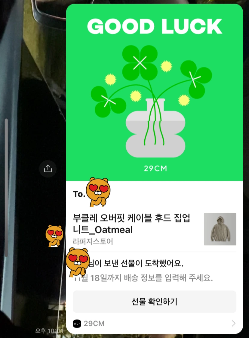 카톡으로 바로 선물도 보낼 수 있으니, 따로 주소지 물어볼 필요도 없어 매우 편리하다.