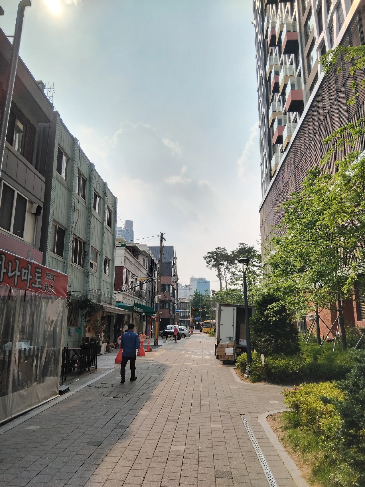 파리 전체를 치더라도 도시풍경은 네다섯 가지 타입으로 함축될 것인데, 나는 이곳에서 도보로 15분 내외가 걸리는 원 안에서 그 이상의 타입을 보았다. 고즈넉한 다가구•단독주택촌, 세련된 모습의 초고층아파트, 다양한 사람들이 공존하는 공개공지, 을씨년스러운 백화점 주변과 화사한 백화점 내부, 초록빛의 한가로운 공원. 신기하면서도 이게 서울의 매력이라면 매력이라는 생각이 들었다.