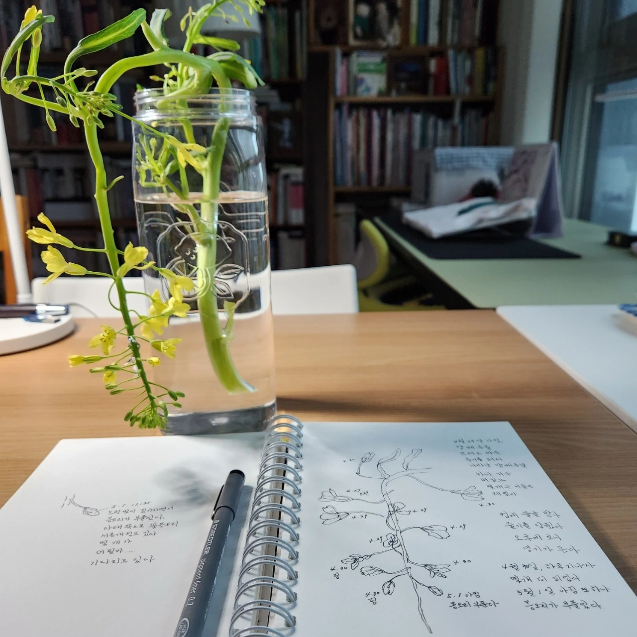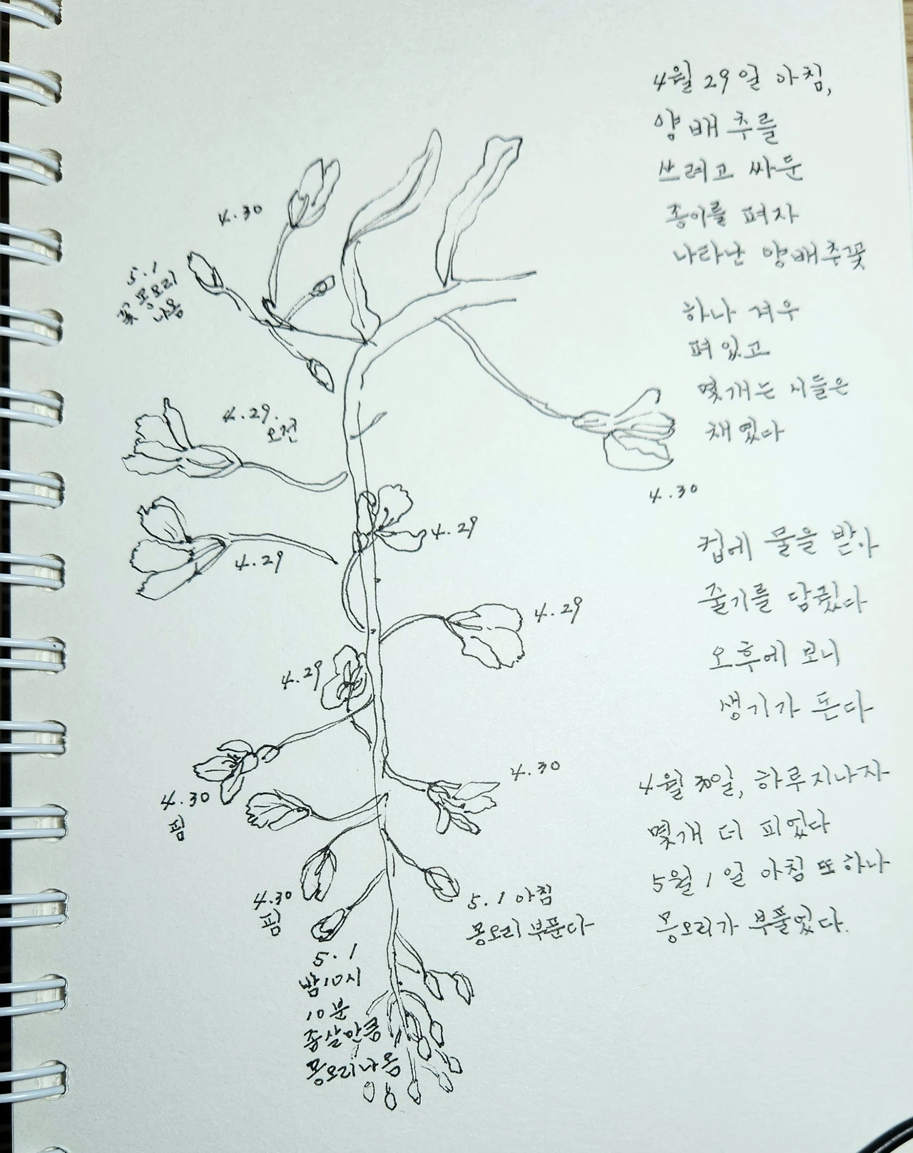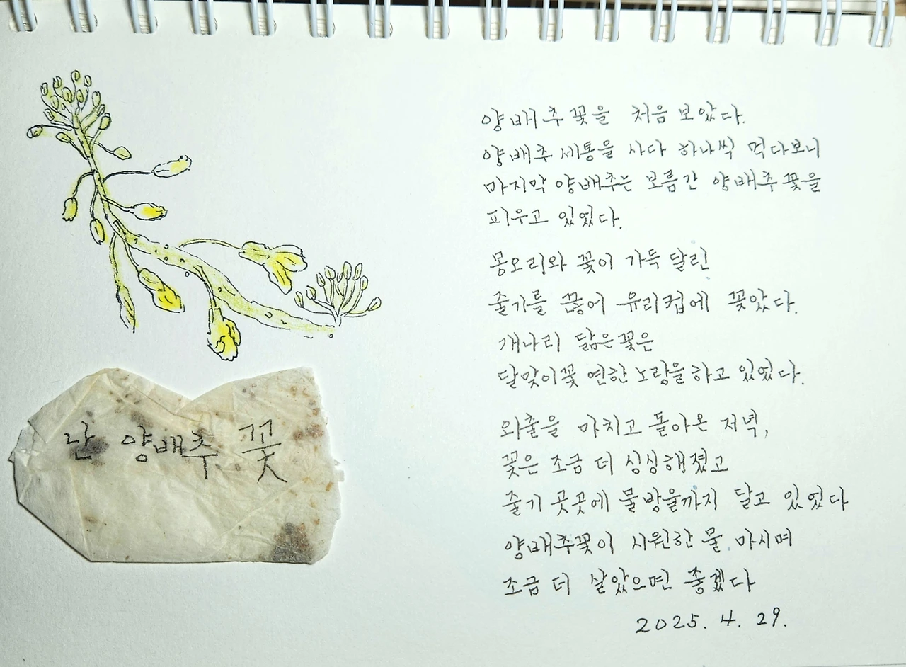 양배추꽃의 변화가 즐거워 일기를 쓰거나 기록을 했다