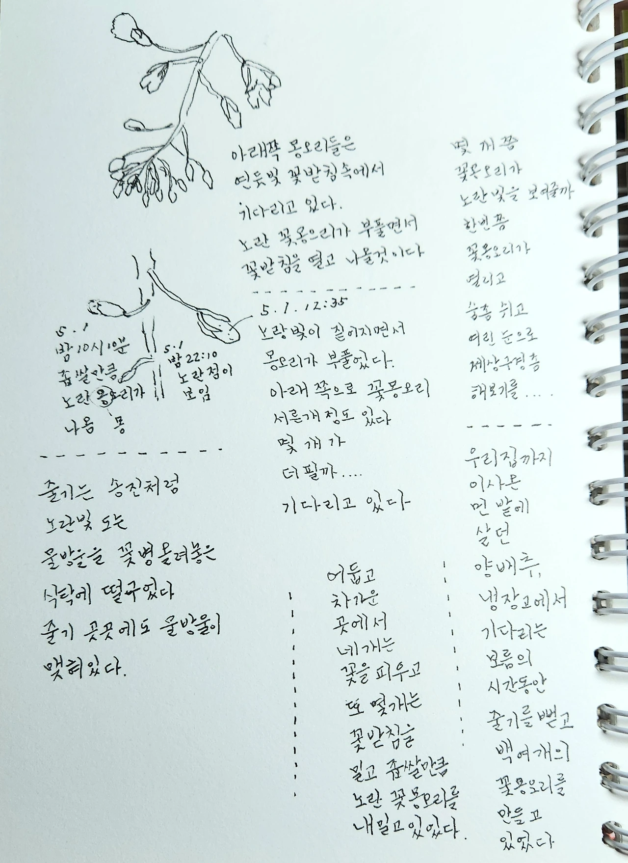 꽃들은 천천히 시들고 말라가고 있었다. 그러는 중에도 줄기 끝에 달려 미처 꽃을 피우지 못한 몽오리들은 애써 연노랑 기운을 내비쳤다.