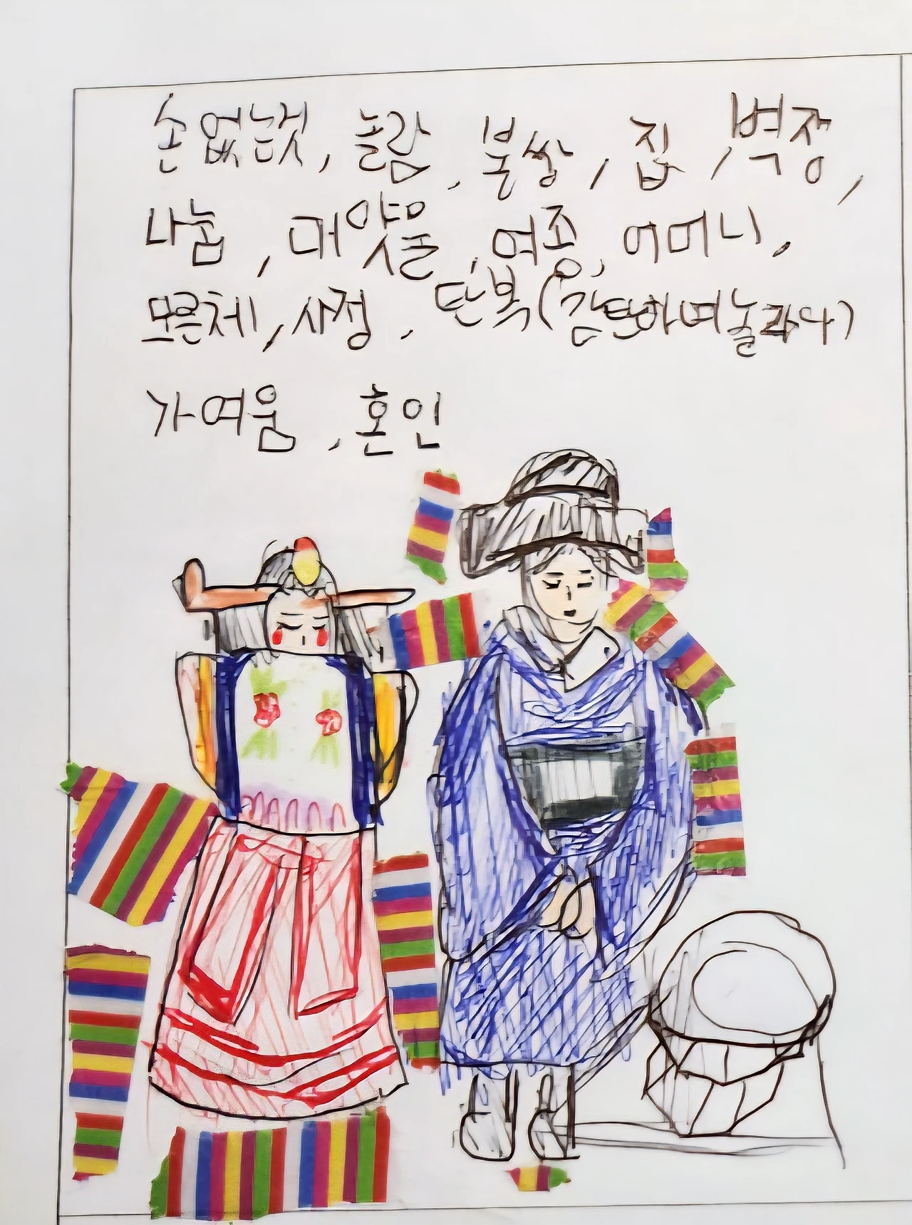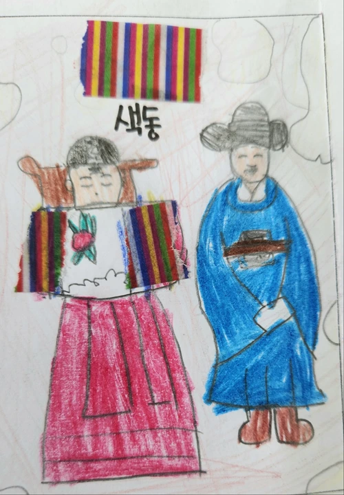 어린이들은 이 활동에 관심과 흥미를 느끼는 듯 했다. 색동을 표현하기 위해 색연필로 쓰거나 나누어준 색동 마스킹 테이프를 쓰기도 했다. 색시의 활옷에도 색동이 들어있는데 역시 화려함을 연출함과 함께 벽사(辟邪 : 요사스러운 귀신을 물리침. 사악을 물리침)의 의미도 있다.