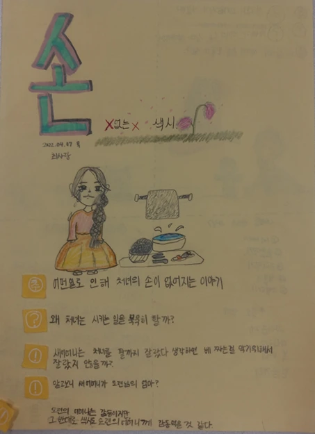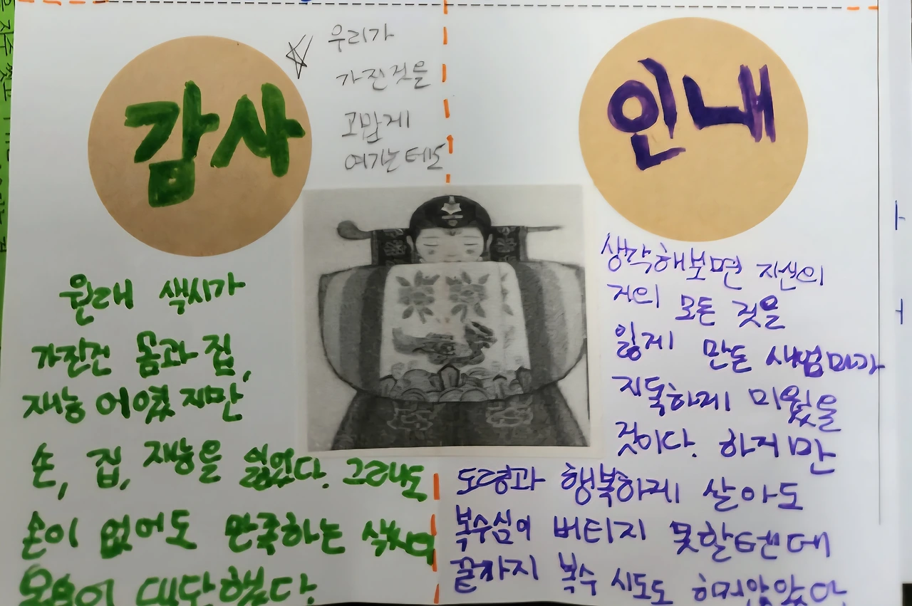 또한 색시가 시련 속에서 도령이나 마고할미를 만났으니 하늘이 무녀져도 솟아날 구멍이 있다는 얘기도 나왔다. 옛이야기와 속담을 연결하는 활동은 우리 옛정서와 풍속, 의식을 인식하게 되는 흥미로운 활동이었다,