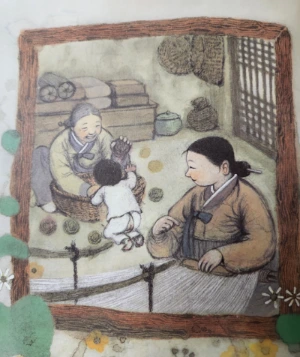 -얘들아, 이번엔 우리 옛이야기를 그림책으로 볼 거야. 바로 <손 없는 색시>란다.