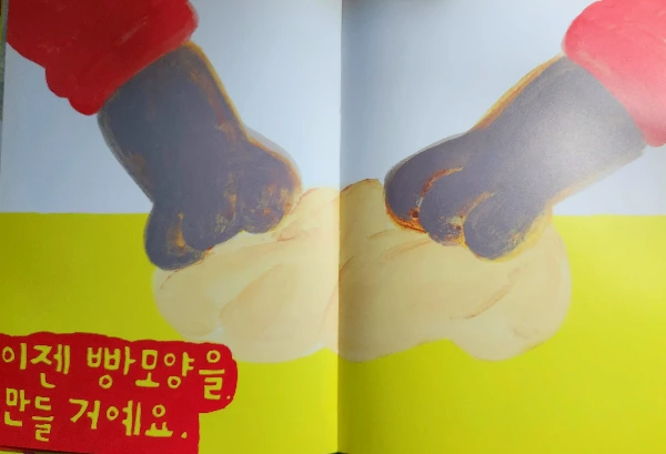 이제 주인공은 빵 모양을 만들기 시작한다. 이젠 빵 모양을 만들거예요를 읽고 그림을 펼쳐 보이는 순간 누군가 소리치듯 말했다.