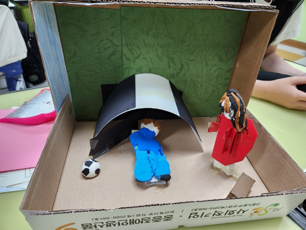 이 지점에서 어린이들에게 연극 과제를 주면 어떨까.... 처음에는 오누이가 벌이는 약간의 갈등 상황을 보여주고 그다음에는 해결 방안을 담은 연극을 해보는 것이다. 책이나 축구공 같은 이미 주어진 소품을 써도 되지만 전혀 다른 소품을 활용해서 문제를 해결하는 방법도 생각해면 좋을 거 같다.
