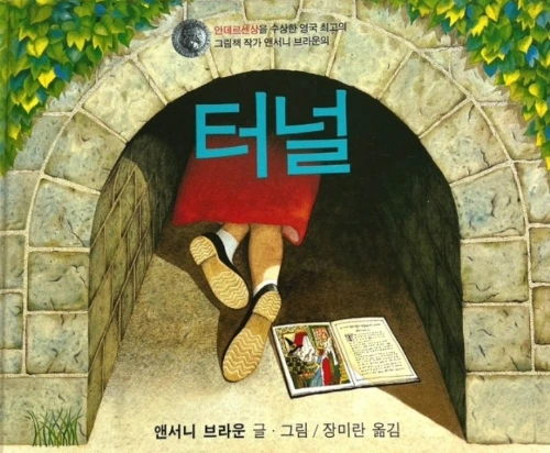 <터널>의 표지는 호기심을 불러일으킨다. 이야기가 들어있다. 여자 아이는 어울리지 않게 치마를 입고 터널로 들어간다. 입구에 펼쳐진 그림책에는 무슨 조짐이라도 보여주듯 마녀가 등장한다.
