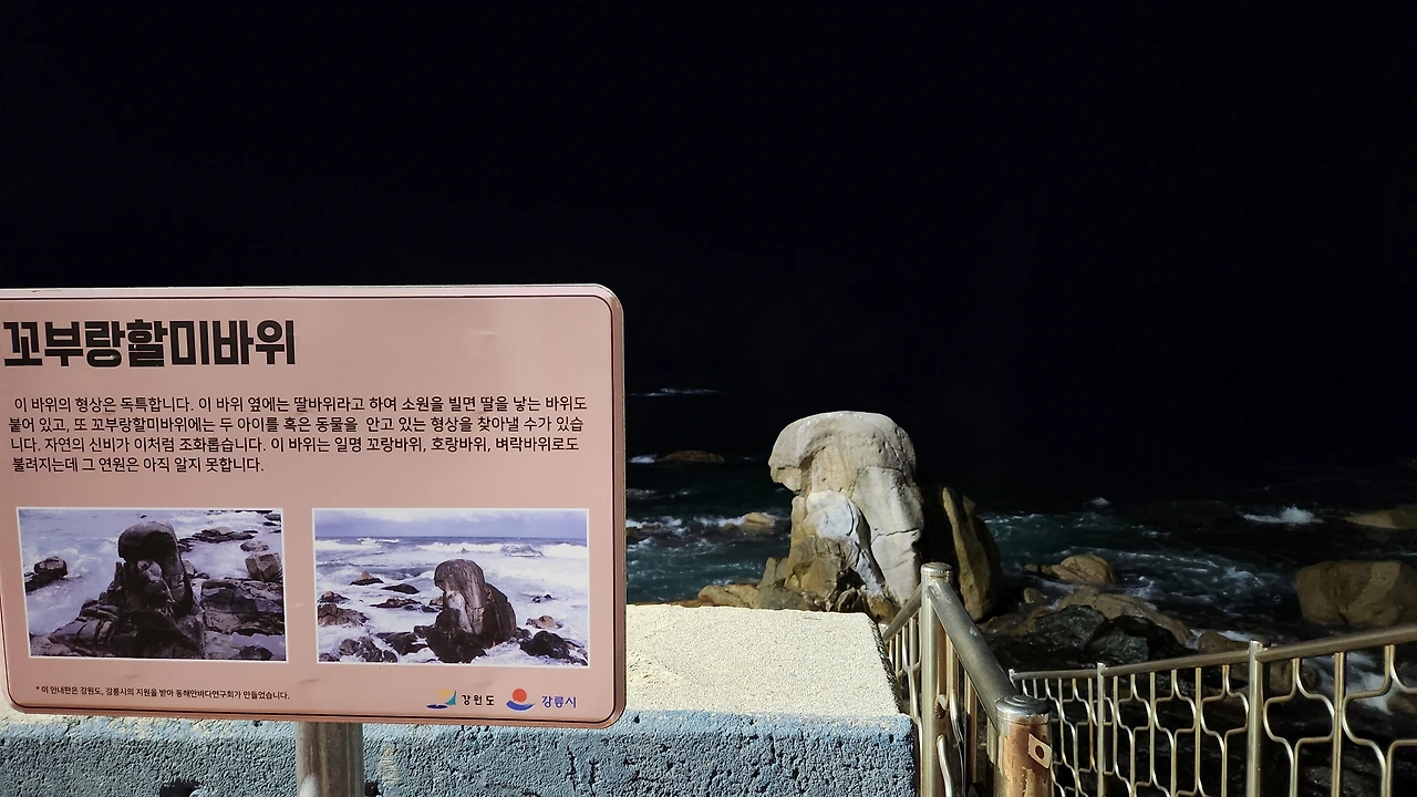 주문진에 도착해서 예전에 살던 산동네 마을 불당골을 가보았다. 남편과 나는 추억에 젖어 아직까지 남아있는 슈퍼와 건물이 허물어진 자리들을 보았다. 한번 들러 짜장면을 맛나게 먹었던 주영반점 자리는 무슨 전시회를 한 끝에 빈 건물로 남아있었다. 내려진 철제문에는 커다란 고래 한 마리가 그려있었다.