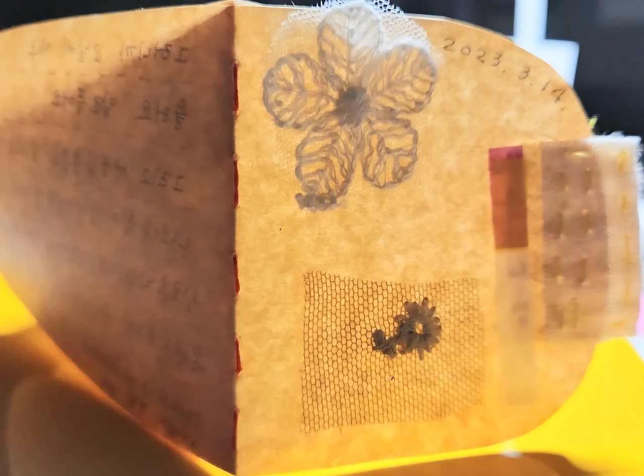 크라프트 종이에 흰 펜이나 검정펜으로 글을 쓰고 그림을 그리기도 했다. 실로 꿰매거나 펀지로 구멍을 뚫기도 했다. 그걸 본떠서 만들었다고 한 것이었다. 생각지 않은 선물에 몸 둘 바를 몰랐다.