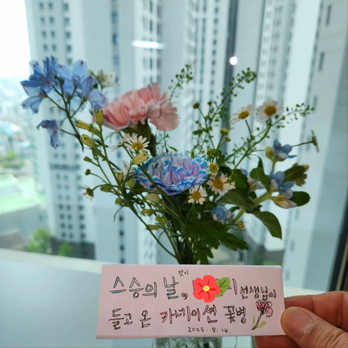 스승의 날! 왜 나를 기억했는지, 꽃을 들고 찾아올 생각을 했는지 묻지 못했다. 그저 짐작할 뿐이다. 우리가 맺어온 유대관계는 매우 전통적인 방식이었다. 옆반 동료교사에게 업무연락을 할 때나 상담요청을 할 때에도 교실 문을 두드리는 일은 이제는 드물어졌다. 교내 공적인 톡망을 이용하거나 카톡, 드물게는 교실 유선전화로 해결을 한다. 긴급한 고민이 있을 때조차 교사들은 교사용 커뮤니티를 사용한다. 누군가 찾아오고 찾아가는 일이 낯선 일이 되어가고 있는 것이다.