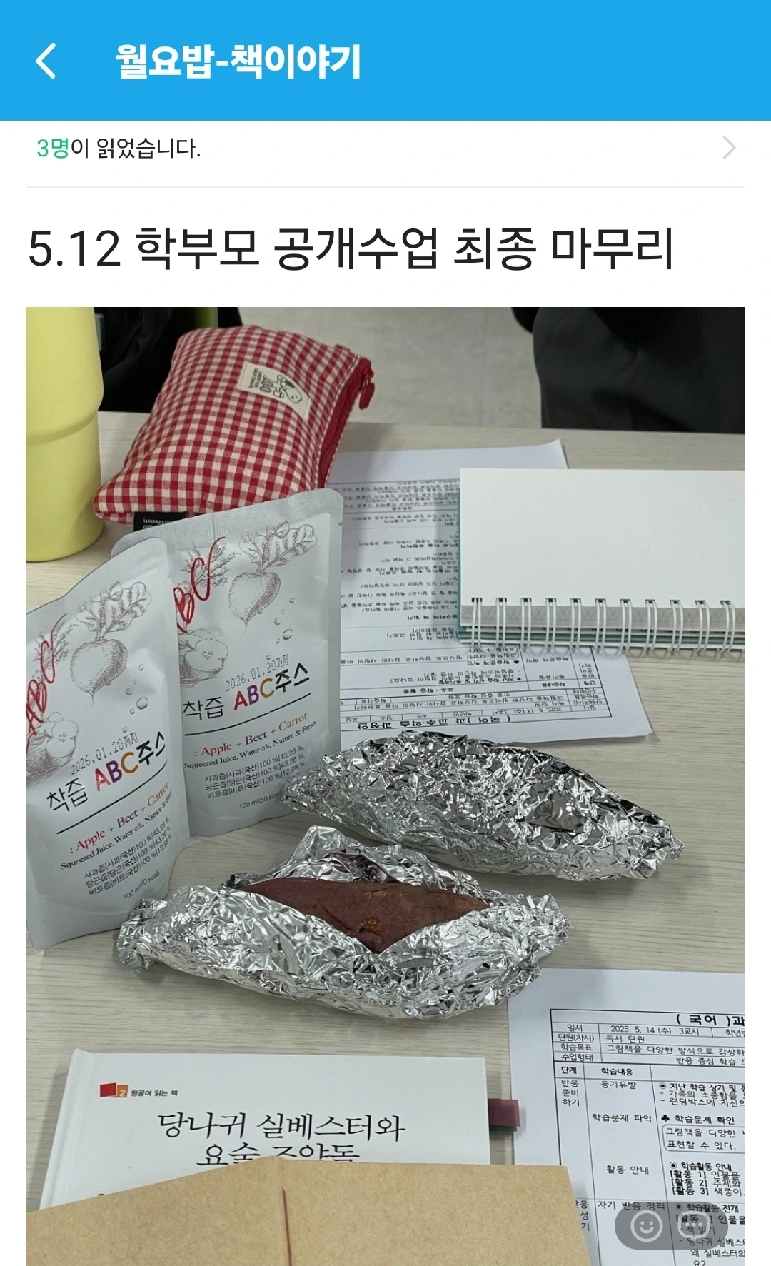 퇴임하면서 모임을 어떻게 하면 좋을지 고민했다. 후배 둘은 모임을 이어가겠다고 했고 지금까지 열심히 하고 있다. 나는 한 달에 한 번 불현듯 찾아갔다. 참석하지 못한 날들은 밴드를 통해 후배들 모임을 보며 답글을 달곤 했다. 얼마 전에는 공개수업을 앞두고는 수업에 대한 고민을 나누었다고 했다. 내가 없으니 서로 더 의지하면서 연구를 하는 듯했다. 공부도 공부지만 맛난 아침 식사 같은 간식도 돋보였다.