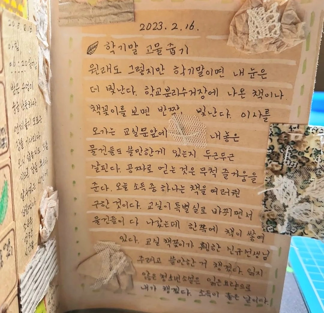 나는 자주 빈티지 다이어리를 쓰고 있었는데 그게 습관이 되어 꽃을 들고 온 그녀나 어린 후배교사들이 고민에 빠져있을 때에는 예쁜 카드를 만들어주곤 했다.