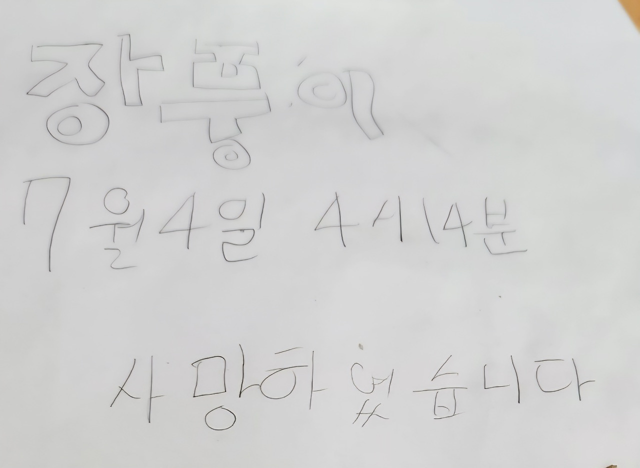 ‘장풍이, 7월 4일 4시 14분, 사망하였습니다’