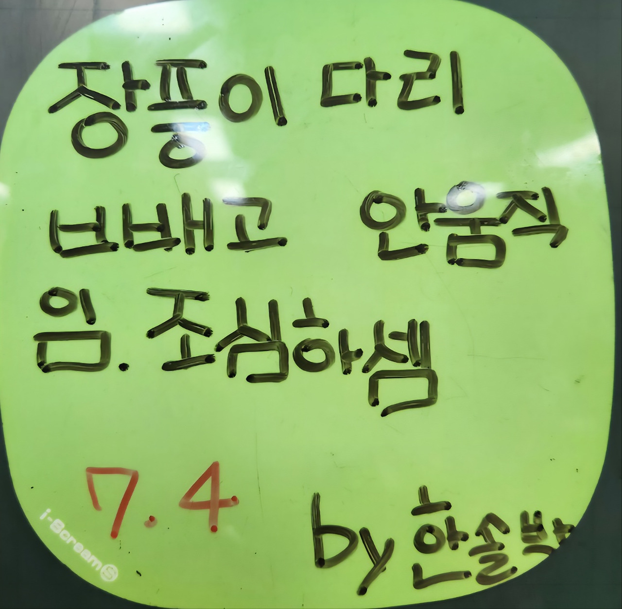 장풍이가 떠나기 며칠 전 어린이들은 걱정이 이만저만이 아니었다. 어린이들 스스로 주의 안내문을 칠판에 붙이기도 했다.