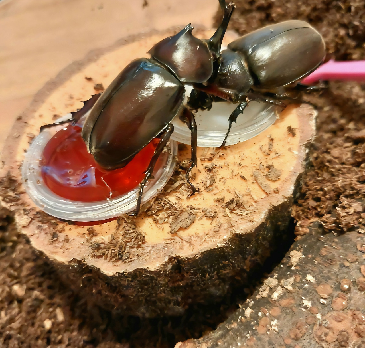 풍순이, 장풍이는 꽤 건강했다. 어린이들의 손길을 느끼는 듯했다. 주인 냄새와 손길을 기억하는 고양이나 강아지처럼, 풍뎅이 부부도 어린이들이 하는 말을 듣고, 우리 반 냄새를 느끼며, 등을 쓰다듬어주고 걱정해 주는 것을 알 거라는 생각이 들었다. 참나무 숲에 비할 수 없지만 사육통이 아주 큰 것도 풍뎅이 부부가 살기에 좋은 조건이 된 듯했다. 수고로움을 마다하지 않고 사육상자를 집에서 가져온 원형이 덕이었다.