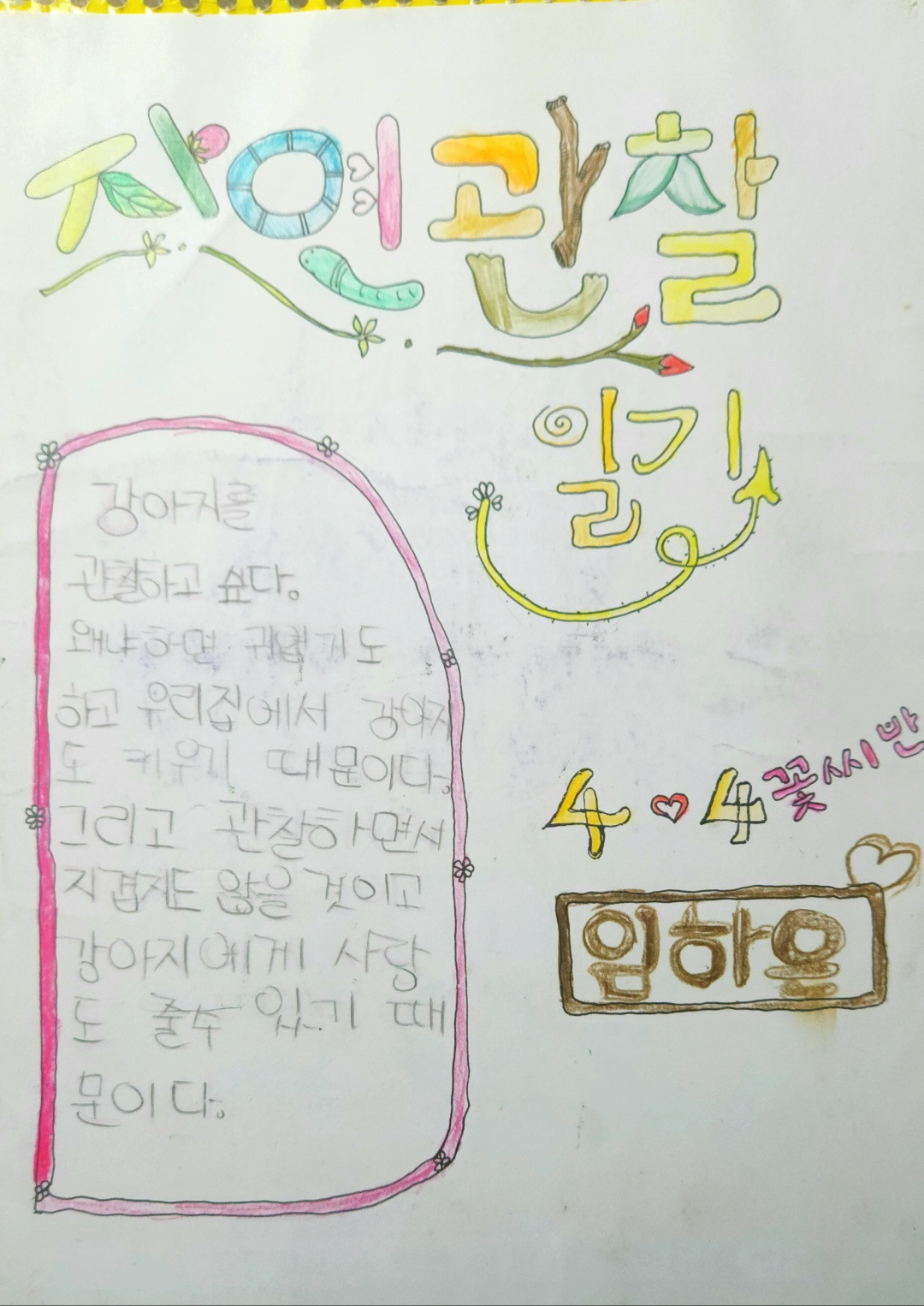 그런 흐름을 따르지 않으려고 했다. 여전히 칠판도 쓰는 일도 중요했다. 수업을 할 때 복사물을 적게 쓰고 이면지에 글을 쓰거나 공책을 조금이라도 썼다. 공부한 내용을 공책에 정리하는 데에는 공을 들이지 못했지만 어린이들이 다양한 글을 쓸 수 있게 했다. 시와 그림일기, 관찰일기와 주제 글쓰기를 주로 했다.