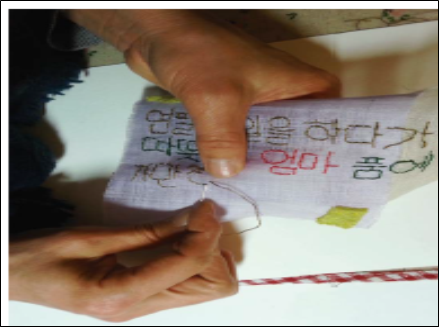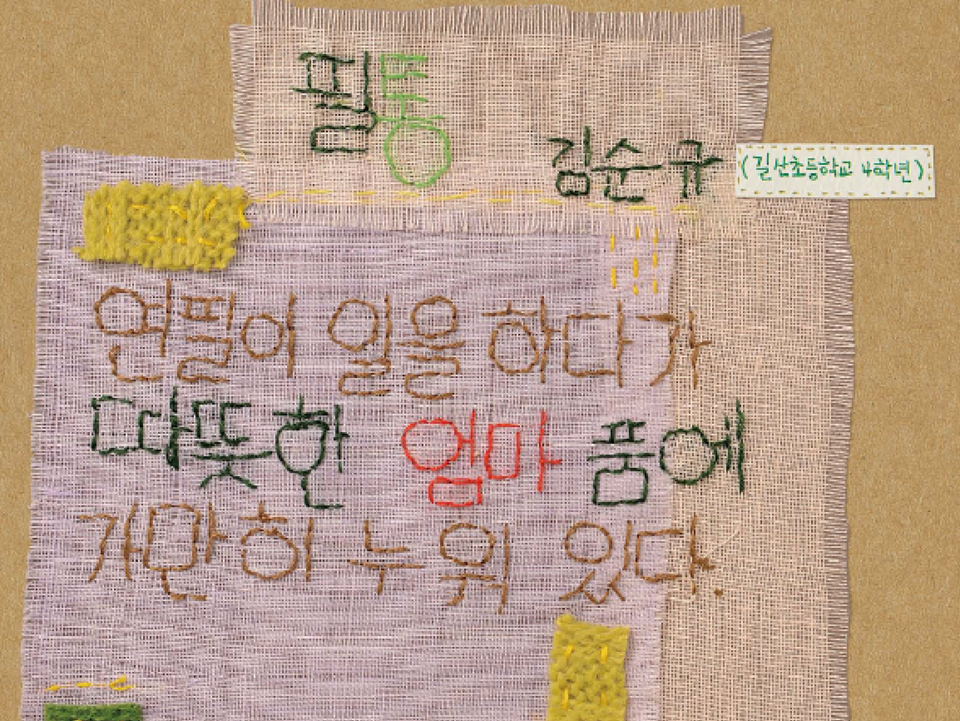 시 한 편에 들어있는 추억을 곱씹으며 바느질을 했다. 시를 쓴 어린이는 연필이 친구였을지도 모른다. 이 시절 어린이들은 종일 연필을 붙잡고 공책에 필기를 하고 집에 돌아가면 일기를 썼을 것이다. 필통에 가지런히 연필을 깎아놓은 친구를 몹시 부러워했을 것이다.