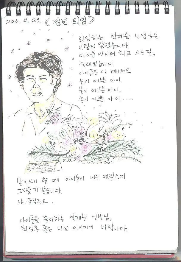 한 해가 끝나고 나면 보통은 버리고 갈 공책이나 학습지를 달라고, 가져가겠다고 하는 어린이가 많다. 그런 어린이를 보면 기쁘다. 내게 공책 쓰기에 영감을 준 어린이들, 그 어린이들 덕분에 오늘도 나는 일지를 쓴다.(*)