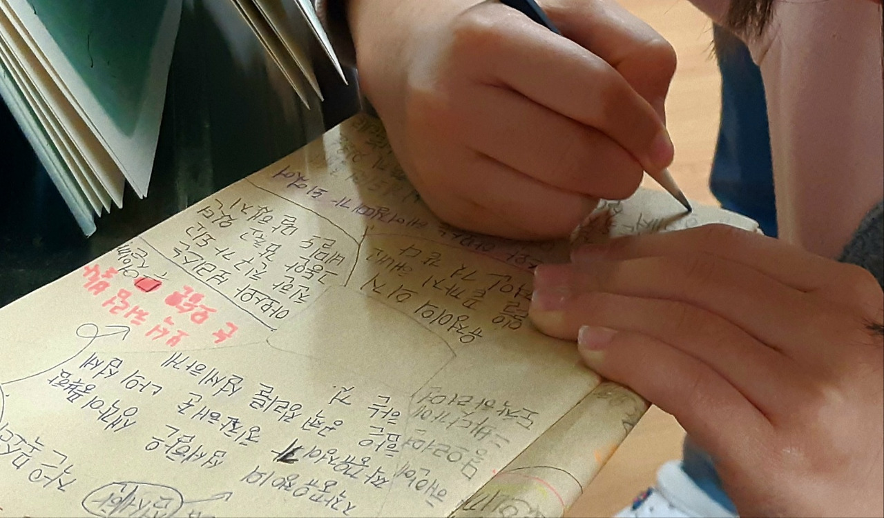 혜연이는 글쓰기와 책 읽기, 공책정리를 좋아한다. 자연 그런 일을 좋아하는 담임 선생님에 대해서도 좋은 감정을 가지고 있다. 내가 책을 읽어줄 때면 쉬지 않고 무언가를 적는다. 쉬는 시간이면 방금 읽어준 그림책을 보고 필사하는 어린이들이 종종 있는데 혜연이도 그 속에 들어있다. 오랜 경험에 따르면 책과 글쓰기를 좋아하는 어린이들은 시간이 걸리기는 해도 결국은 친구가 생기곤 했다. 11월이나 12월쯤 그랬다. 그러니 외톨이인 지금, 자기 세계를 만드는 일에 집중해도 좋을 거 같다.