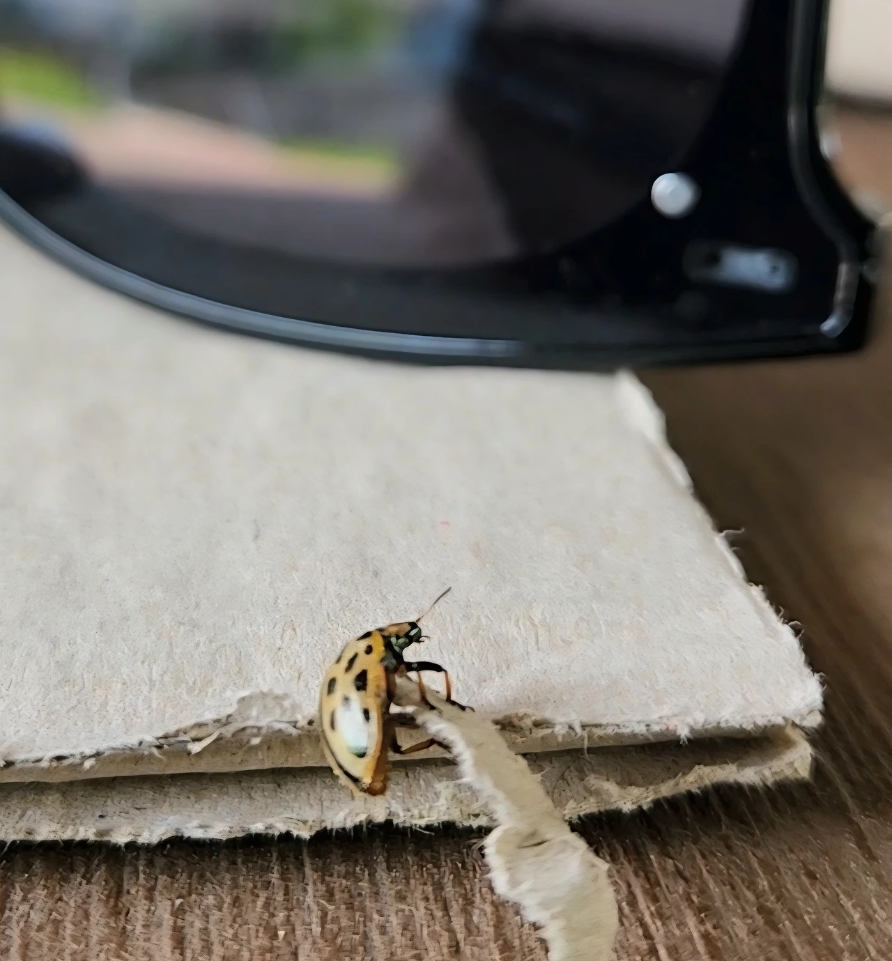 남편이 돌아왔다. 나는 결국 작은 벌레에 대한 별 정보를 얻지 못한채 집으로 돌아왔다. 집에 와서 찍은 영상을 남편에게 보여주었다. 남편은 모양이 딱정벌레 같다며 말끝을 흐렸다. 다시 검색을 시작했다. 십구점 무당벌레에서 멈췄다. 내가 본 벌레와 바탕색이 비슷했는데 아쉽게도 몸체가 전부 검은 색 점이 찍혀있었다. 내가 본 벌레는 머리쪽이 검정이었다.