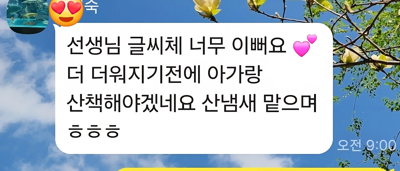 감상도 쓰고 그림도 그려본다. 필사 노트를 사진으로 찍은 뒤 카톡으로 들어가 시 배달 할 지인 이름을 찾아 전송한다. 시와 시 속에 담긴 냄새, 내 기억 속 산 냄새까지 얹어 전송한다