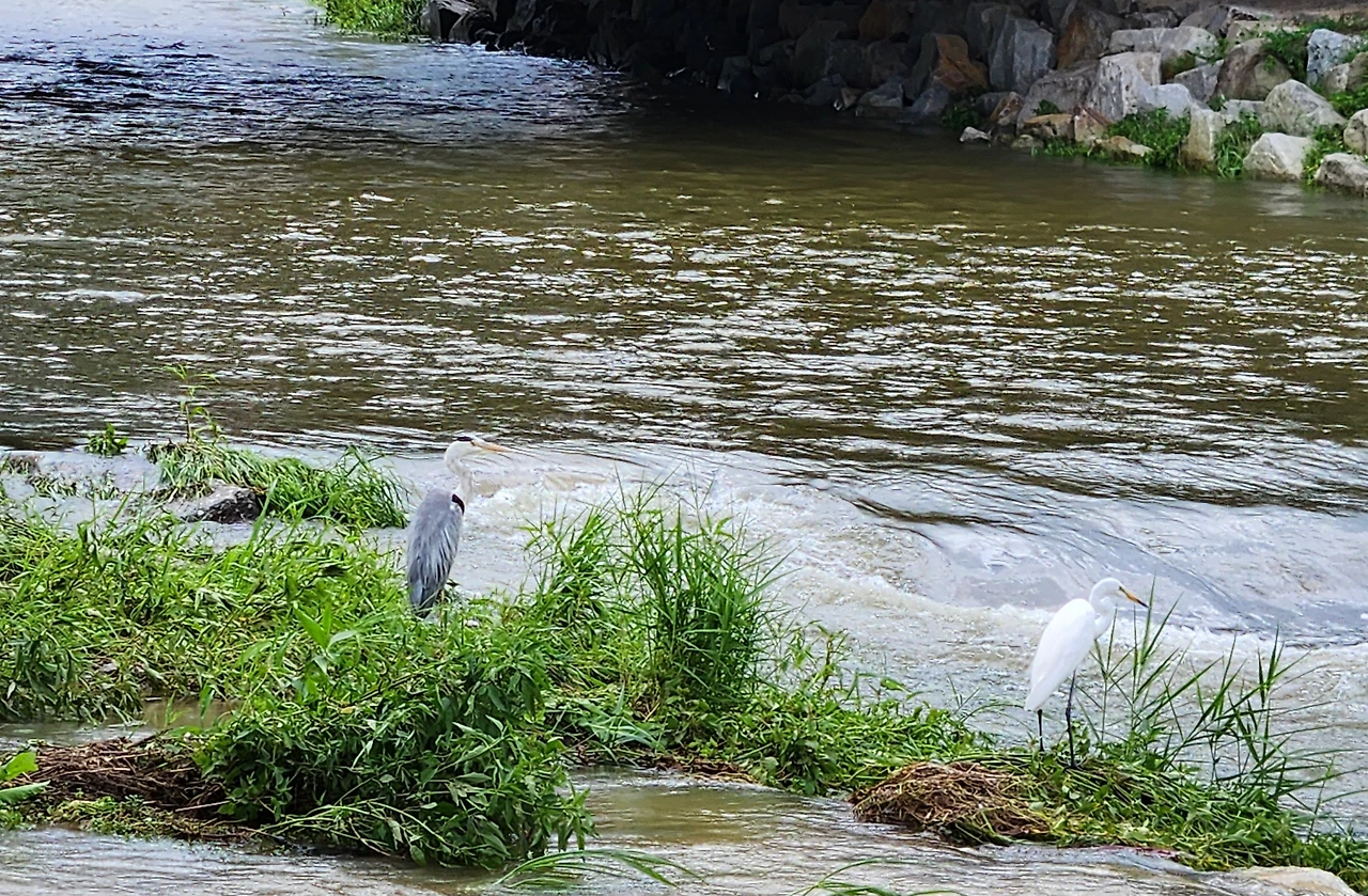 하늘이 끝없는 물덩이를 토해내면서 사방을 휩쓸고 간 뒤였다. 남편과 개천으로 나갔다. 어제의 그 길인까 싶을 만큼 산책로 곳곳엔 웅덩이가 생기고, 무너졌으며, 모래가 쌓여있었다.