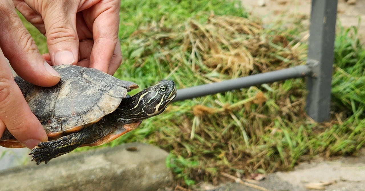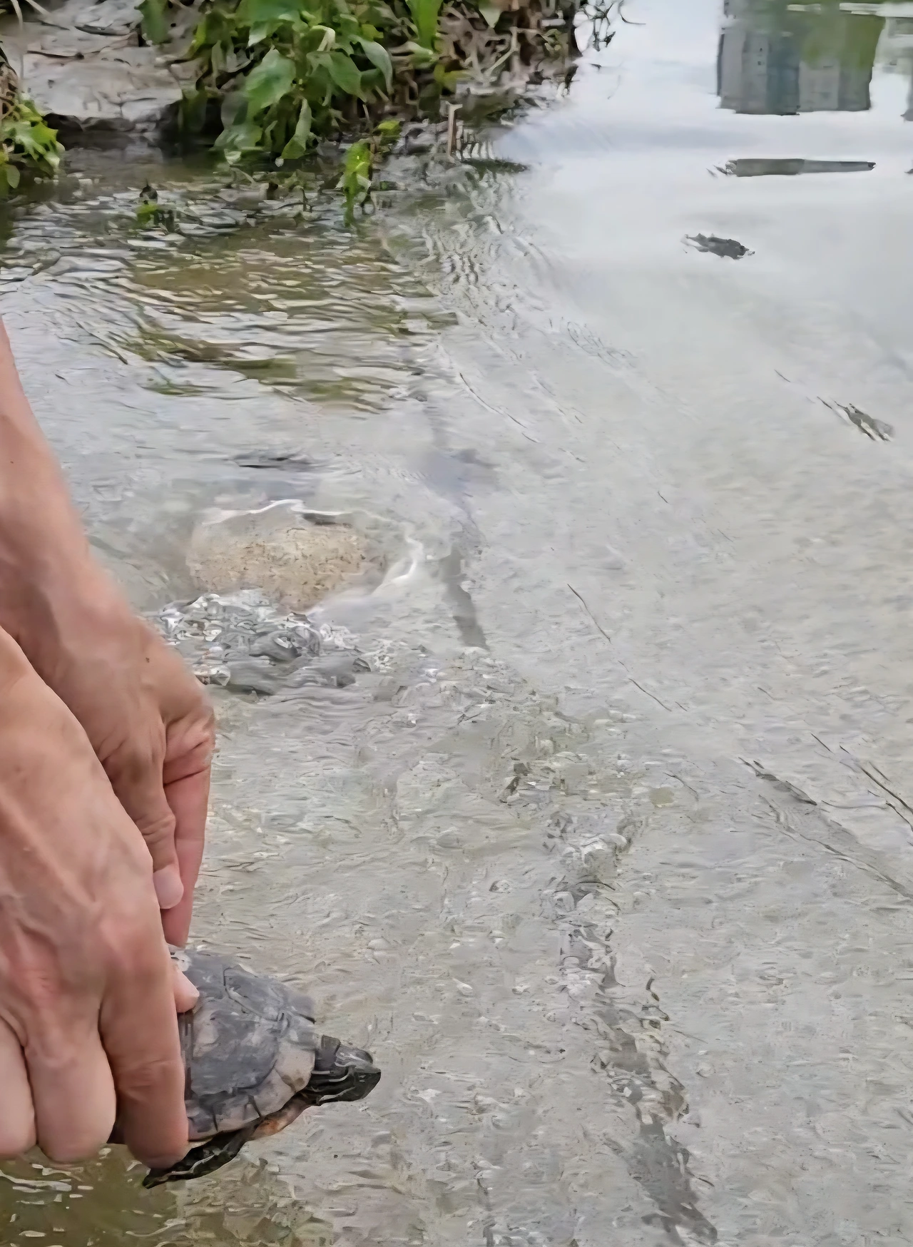 우린 이 귀한 남생이 대접을 어떻게 하는 게 좋을지 몰라 우선 남생이가 움직이는 대로 따라갔다. 하지만 남생이는 방향을 정하지 못한 채 두어 걸음 가다 멈추었다. 더 이상 움직이지 않고 기웃거렸다. 남편은 자전거에 치일 수 있어서 위험하다고 했다. 우리는 이동 작전을 펼쳤다. 남편은 조심스레 남생이 양끝을 잡고 개천 쪽으로 갔다. 인간과 처음 만나는 남생이도 적잖이 당황스러울 테니 느릿느릿 움직이기로 했다.