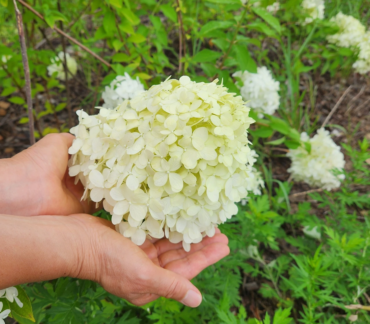 개천에서 피던 수많은 꽃들이 소강상태에 들어가는 7월에 나무 수국 하얀 꽃은 빛을 낸다. 멀리서 보면 뭉게 구름 같고 가까이 가면 작은 송이는 주먹밥, 큰 송이는 고봉밥 같다.