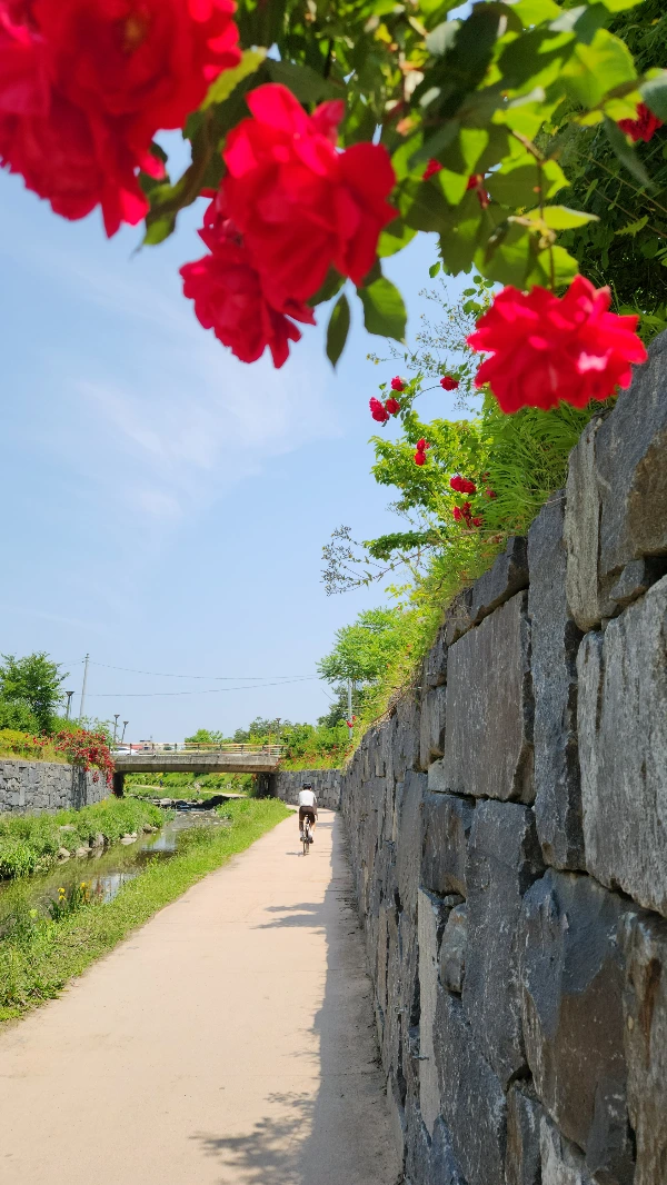 다른 날처럼 남편과 트레킹을 하는데 멀리서 돌다리를 건너오는 아주머니와 아이 둘을 보인다. 날은 무척 뜨거웠다. 우리는 모자에 양산까지 쓰고 있었는데 모녀로 보이는 그들은 모자도 우산도 없었다. 엄마는 조금 지쳤는지 손으로 해를 가리며 우리 쪽으로 왔다. 작은 딸이 막 징검다리를 건너 엄마한테 달려오는 순간이었다.