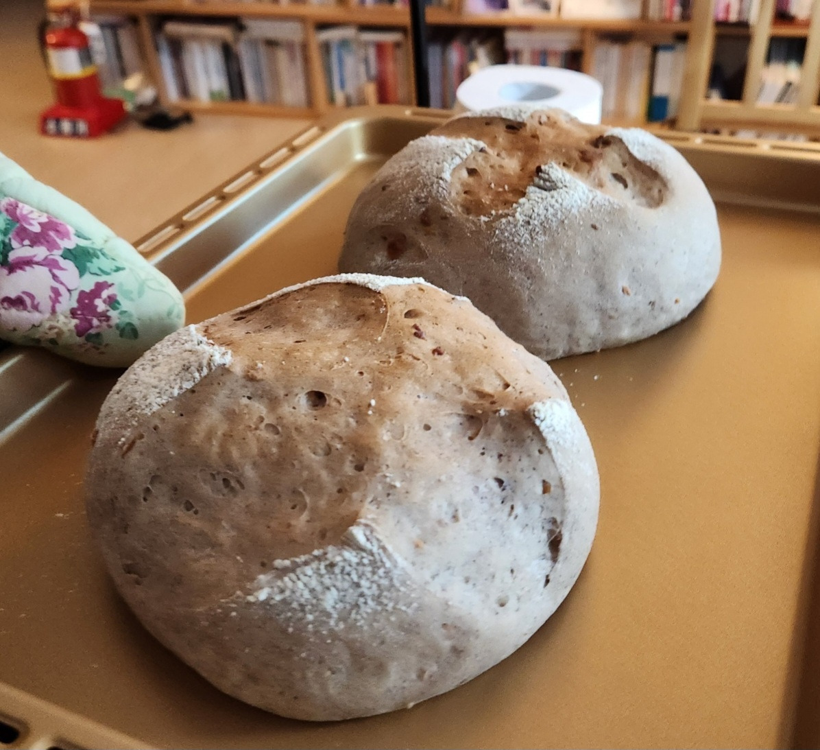 마지막으로 빵을 굽는다. 남편이 손으로 치대 구운 빵이다. 빵을 만들기 시작하면서 밥 먹는 일이 줄었다. 한 끼는 빵, 한 끼는 밥 이렇게 먹는다.