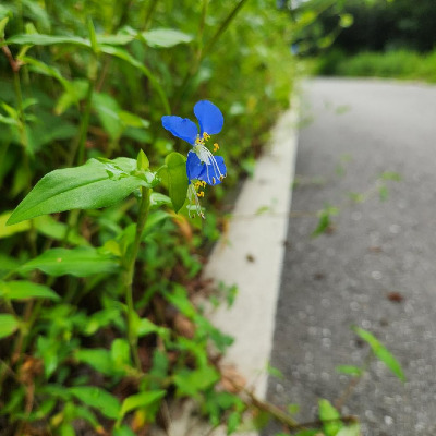 한여름에 피는 꽃, 달개비라고도 부르는 닭의장풀이 피고 있습니다.