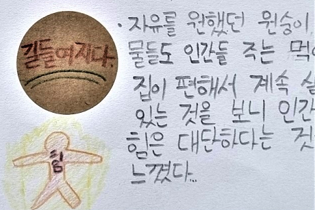 어린이들에게 진지한 고민을 하게 만드는 문장이다. 아무리 도망가도 사람들 세상에 속해 있는 동물의 현실을 가감 없이 보여주고 있다. 이런 문제에 맞닥뜨리면 어린이들은 감정이 앞서기 쉽다. 짝토의 시간을 주면 종종 사람들이 나쁘다, 동물이 불쌍하다, 동물원이 없으면 좋겠다는 식으로 말하는 어린이들이 있다. 이럴 때 조금 더 생각할 수 있는 자극을 주면 좋다. 한걸음 더 들어가 고민하게 할 필요가 있는 것이다. 한 어린이는 독후감에 이렇게 쓰고 있다.