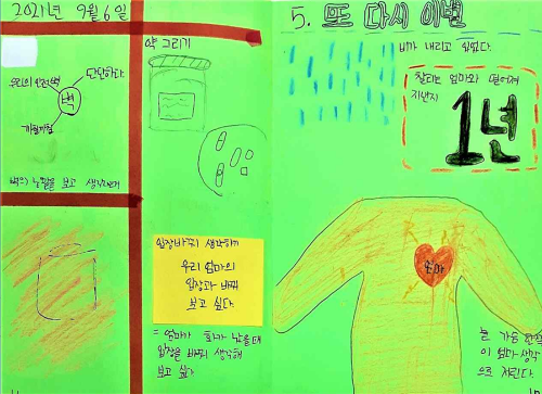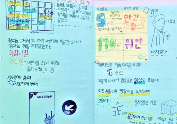 선생님은 여러 인물의 대사를 오고 가면서 목소리를 바꾸어 읽어주셨다. 그래서 책에 더 집중되고 흥미를 가진 것 같다. 친구들끼리 돌아가며 대사를 읽어보았는데 은우가 해리엇의 목소리와 정말 맞고 어울린다는 것을 알았다. 책을 잘 읽지 않았는데 꽃씨반에서 책을 읽다 보니 스스로 책을 읽으면서 재미있게 보내고 있는 것 같다. 그리고 <해리엇>을 읽을 때 슬프고 행복하고 기쁘고 놀랍고 신기한 여러 감정을 다 느낀 것 같다. 너무너무 재미있었다.(남춘천초 5학년 신유나)