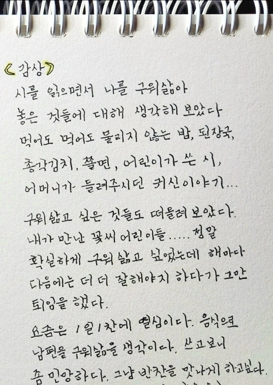 시 한 편으로 자신의 마음과 일상을 이렇게 정리해 보는 것도 좋은 거 같다. 조만간에 우린 그림책 한아름 안고 그동안 쓴 일기도 챙겨서 만날 것이다.