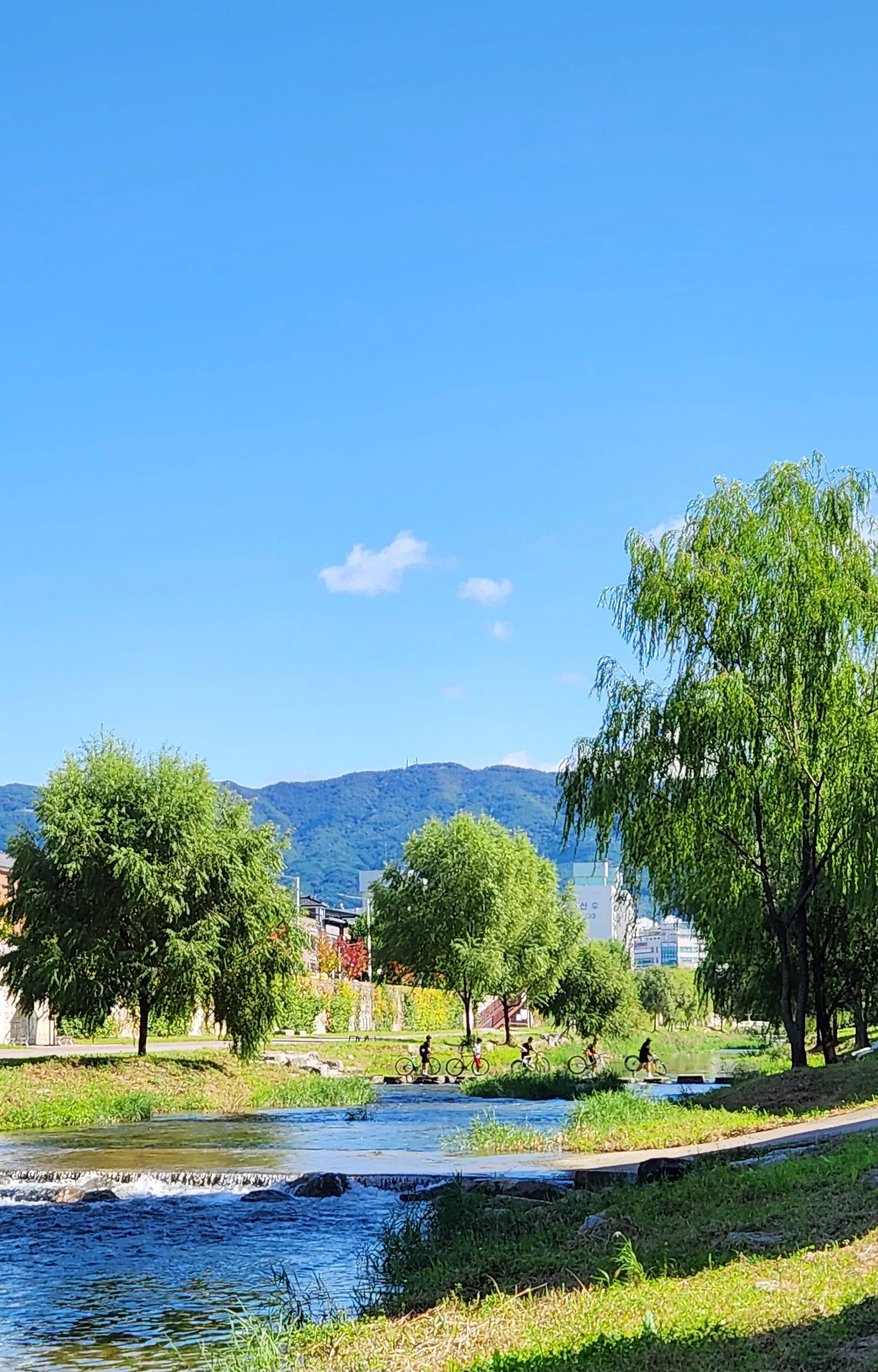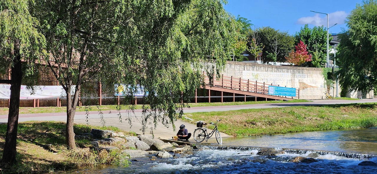 조금 멀리 있어서 안타까웠지만 가까이 있었다면 박수라도 쳐주고 싶었다. 소년들은 긴장한 듯 느리면서 조심스럽게 서로의 간격을 유지하며 돌징검다리를 무사히 건넜다. 몸집이 자그마한 소년도 잘 건너왔다 미션을 완성한 이들은 호기롭게 페달을 세게 밟으며 내 곁을 지나갔다.