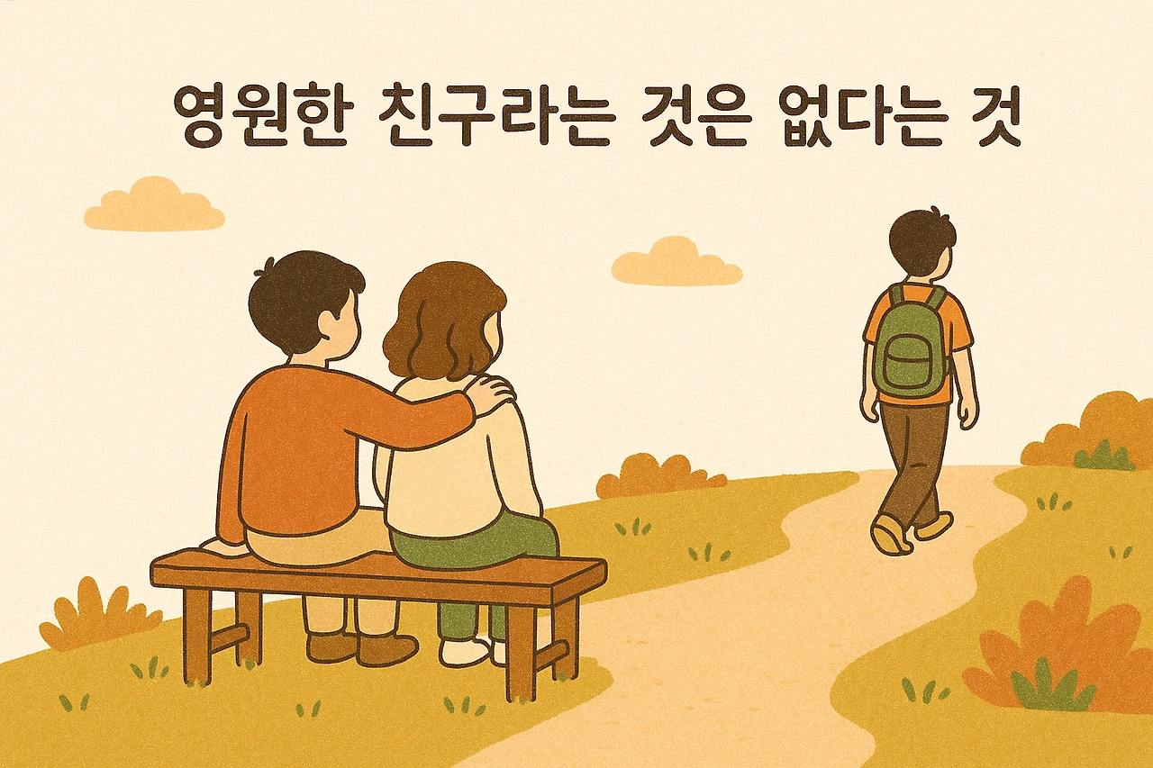 평생 가는 친구는 없다. 하지만 각 시기마다 소중한 친구들이 있다. 어떤 친구는 학창 시절에만 가깝고, 어떤 친구는 직장생활 시기에만 가깝고, 어떤 친구는 지금까지도 가깝다. 모든 관계에는 적절한 시기와 거리가 있다.